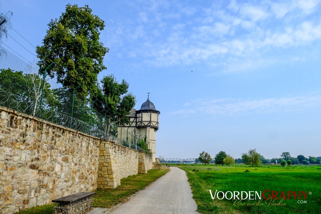 Von der Bedienung des Hauses bekommen wir noch den Tipp, rechtselbisch zu fahren. Wir sollen über die stillgelegte Eisenbahnbrücke fahren. Was sie unerwähnt lässt ist, dass man mit den Satteltaschen nicht um die Schikane herum kommt, ohne die Taschen 2x ab- und wieder anzuhängen. Bis nach Magdeburg sind es ca. 50 km, die wir in einem Rutsch durchfahren, damit wir viel Zeit haben uns Magdeburg anzuschauen. Die Strecke ist heute wieder sehr abwechslungsreich. Einen großen Teil geht es auf dem Deich entlang, es geht aber auch durch Wälder und über weite freie Ackerflächen. Dabei kommen wir an dem berühmten Pretziener Wehr vorbei.