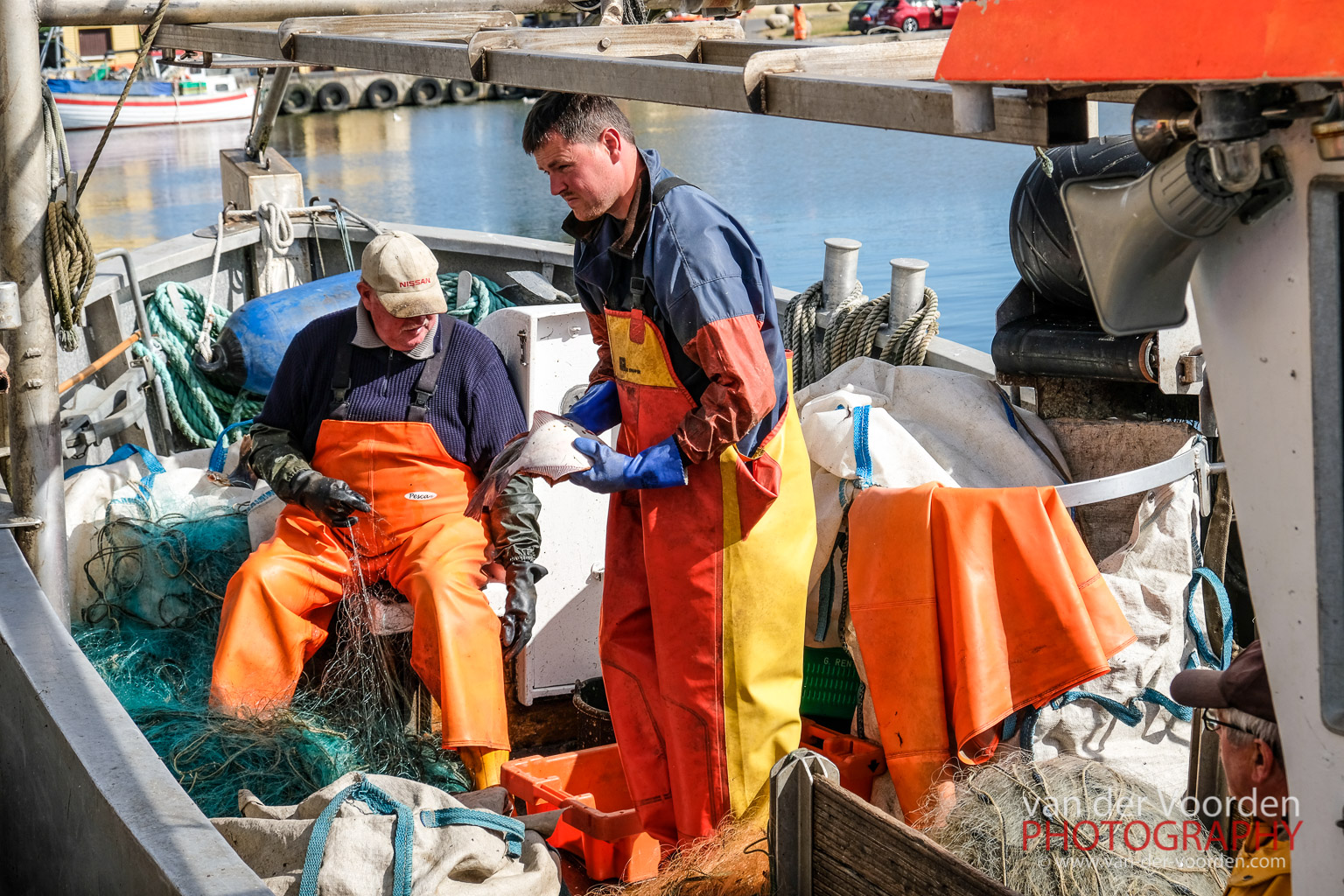 Um 7 Uhr wird es schon heiß im Zelt. Eine Stunde später sitzen wir bereits beim Frühstück an der Rezeption des Campingplatzes. Das Preis-Leistungsverhältnis ist hier unangefochten Platz 2. Der Campingplatz für zwei Personen mit Zelt inklusive Strom kostet 16,70 €. Der Frühstückskaffee sagenhafte 1 €. Auf dem wunderbaren, naturbelassenen Campingplatz könnte man es noch länger aushalten, aber wir wollen heute weiter. Den ersten Zwischenstopp machen wir gleich nach ein paar hundert Metern am Fischerhafen von Freest. Die Fischer puhlen die Fische aus den Netzen und verkaufen sie teilweise gleich vom Boot weg.