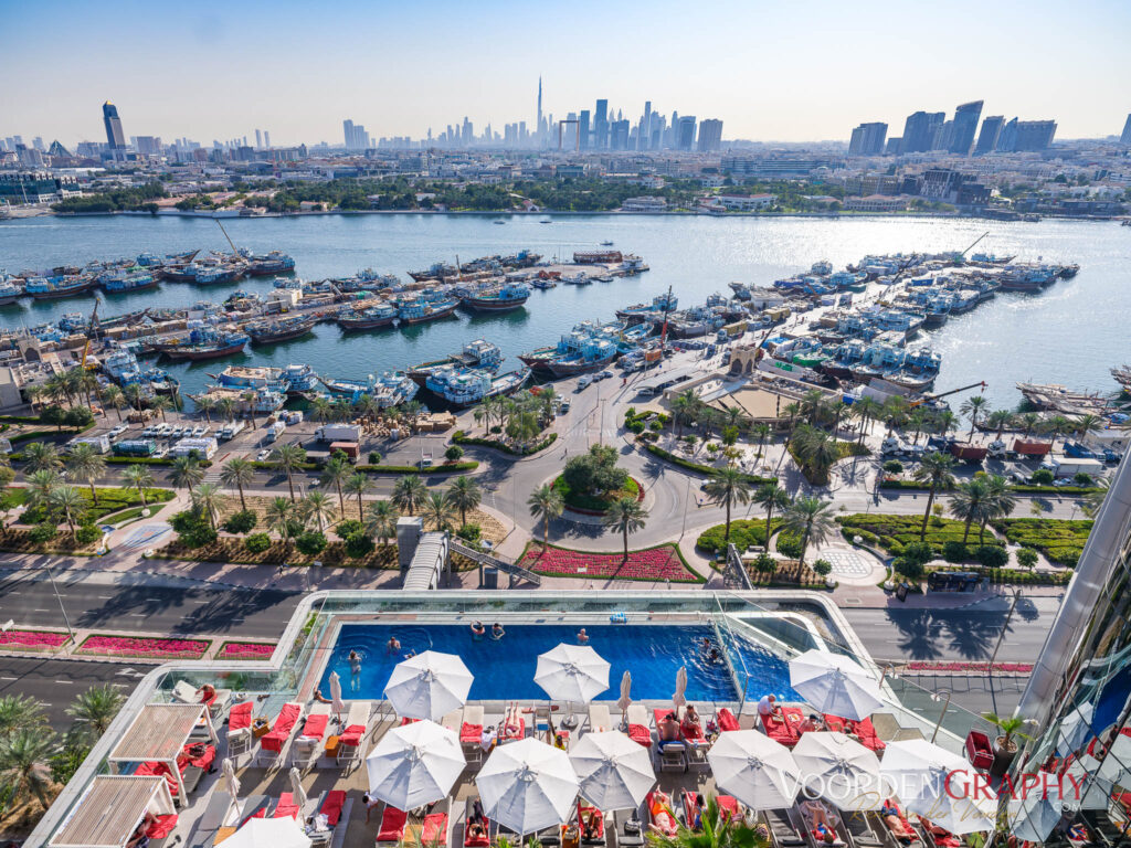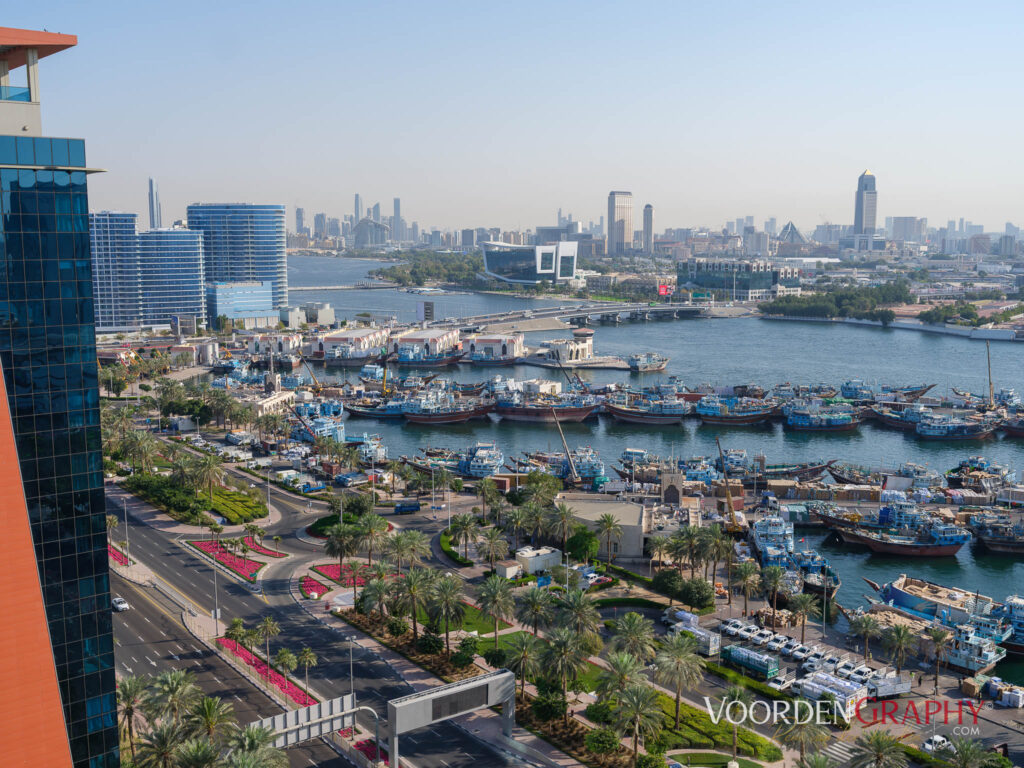 Donnerstag, 19. Februar 2026: der Wecker klingelt um 4:30 Uhr. Schnell einen Pulver Kaffee und eine Waffel auf dem Zimmer und eine halbe Stunde später laufende 7 Minuten zum Flug Hafen Stuttgart. Wir sind sehr früh die Schalter haben noch geschlossen also erst mal warten. Gepäck Aufgabe zweites Frühstück in Form von Joghurt und kaltem Kaffee. Nach der Sicherheitskontrolle wieder warten aufs Boarding, davor noch ein Käsebrot vom Vortag. Endlich geht’s los mit Eurowings pünktlich um 8:10 Uhr. Flugzeit 6 Stunden. Wir bestellen eine leckere Pasta. Ankunft mit dreistündiger Zeitverschiebung um 17:00 Uhr. Local time. Passkontrolle mit Gesichtsscreening, Koffer abholen, draußen wartet ein freundlicher des Reiseveranstalter, ein Fahrer ist auch gleich da, der uns in circa 15 Minuten zum Hotel Bandar Rotana fährt. Der Checkin ist super freundlich, das Hotel ist total luxuriös. Wir kommen im elften Stock unter mit Blick aufs Dubai Creek.