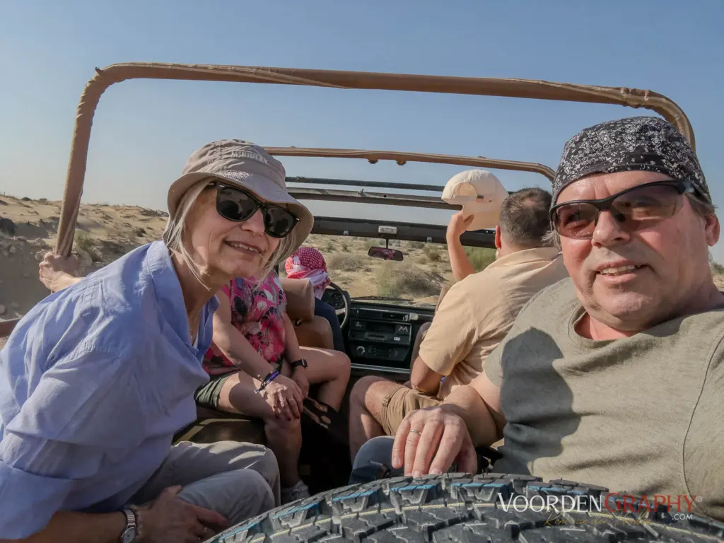 Pünktlich um 15:00 Uhr wurden wir von Mohammed abgeholt – ein freundlicher Pakistani mit Humor und Gelassenheit, die man vermutlich nur entwickelt, wenn man regelmäßig Touristen durch die Wüste chauffiert. Außerdem wartete bereits eine belgische Familie mit einem etwa elfjährigen Jungen im Auto. Die internationale Reisegruppe war also komplett, und so ging es los.
