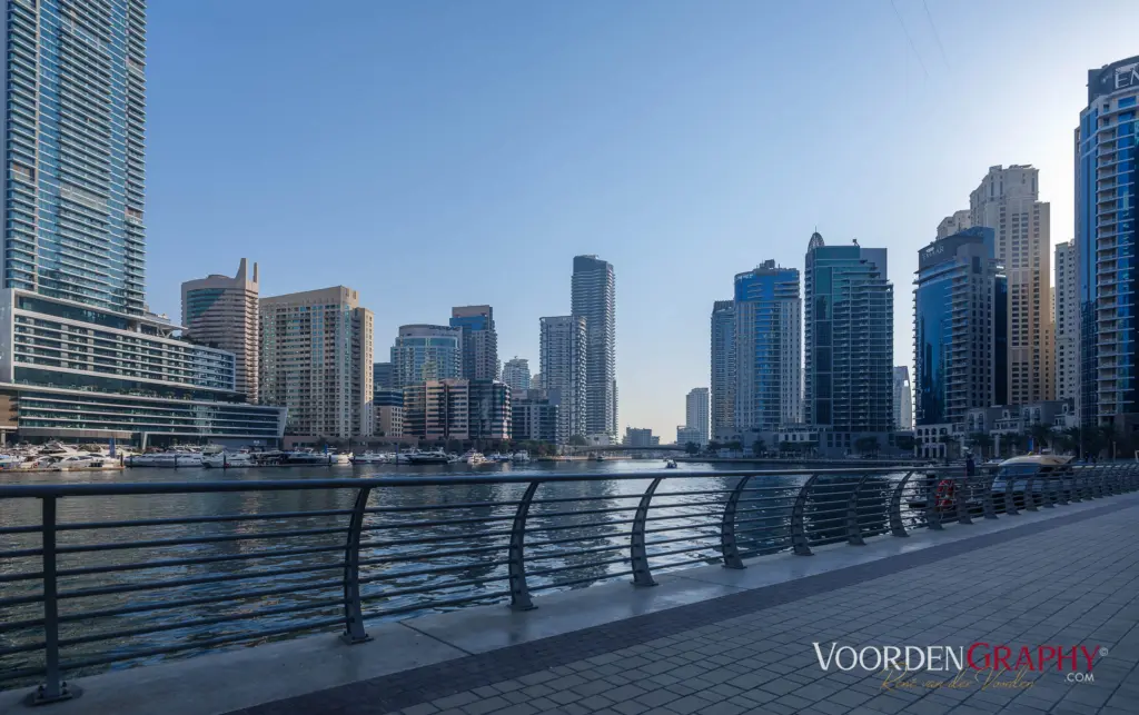 Alle Metro- und Straßenbahnen in Dubai fahren vollautomatisch und ohne Personal. Und deshalb gleiten wir wie in einem Science-Fiction-Film durch die Stadt. Mit Metro und Tram fahren wir erneut zur Dubai Marina und schlendern entspannt an der Promenade entlang. Die Wolkenkratzer spiegeln sich im Wasser, während die Sonne langsam tiefer sinkt.